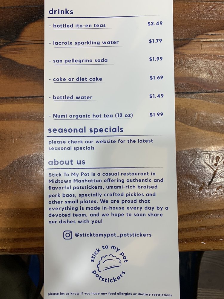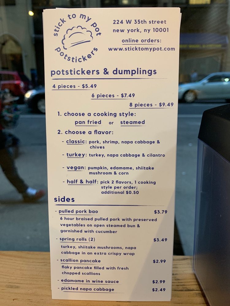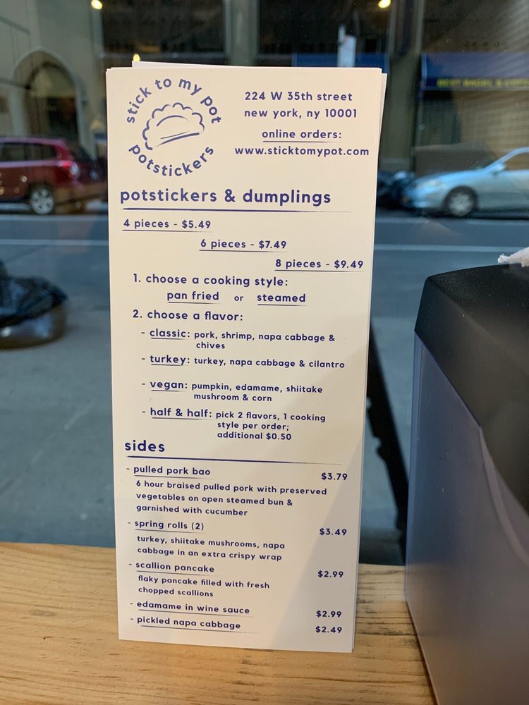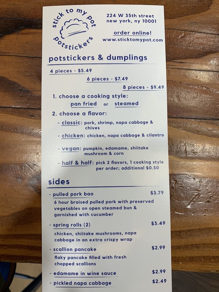 Located in the heart of New York at 224 W 35th St, Stick To My Pot serves an enticing selection of authentic Chinese dishes that are both affordable and delicious. The menu is designed for those on the go, featuring highlights such as the succulent Pulled Pork Bao, with six hours of braised pork enveloped in a soft steamed bun, and crispy 2-Piece Spring Rolls brimming with chicken and shiitake mushrooms.